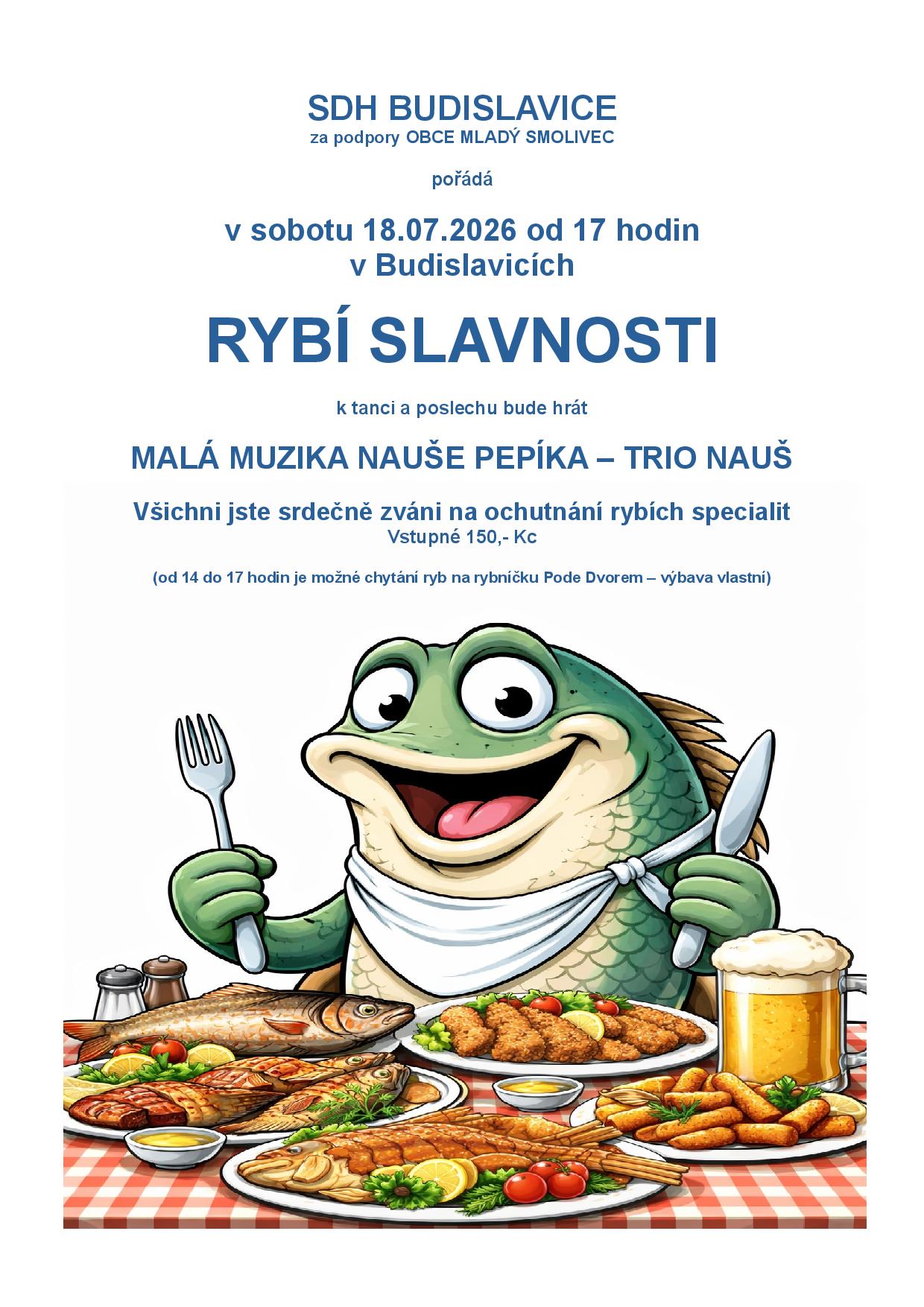 Srdečně Vás zveme 18.07.2026 od 17 hod na Rybí slavnosti 2026 v Budislavicích,